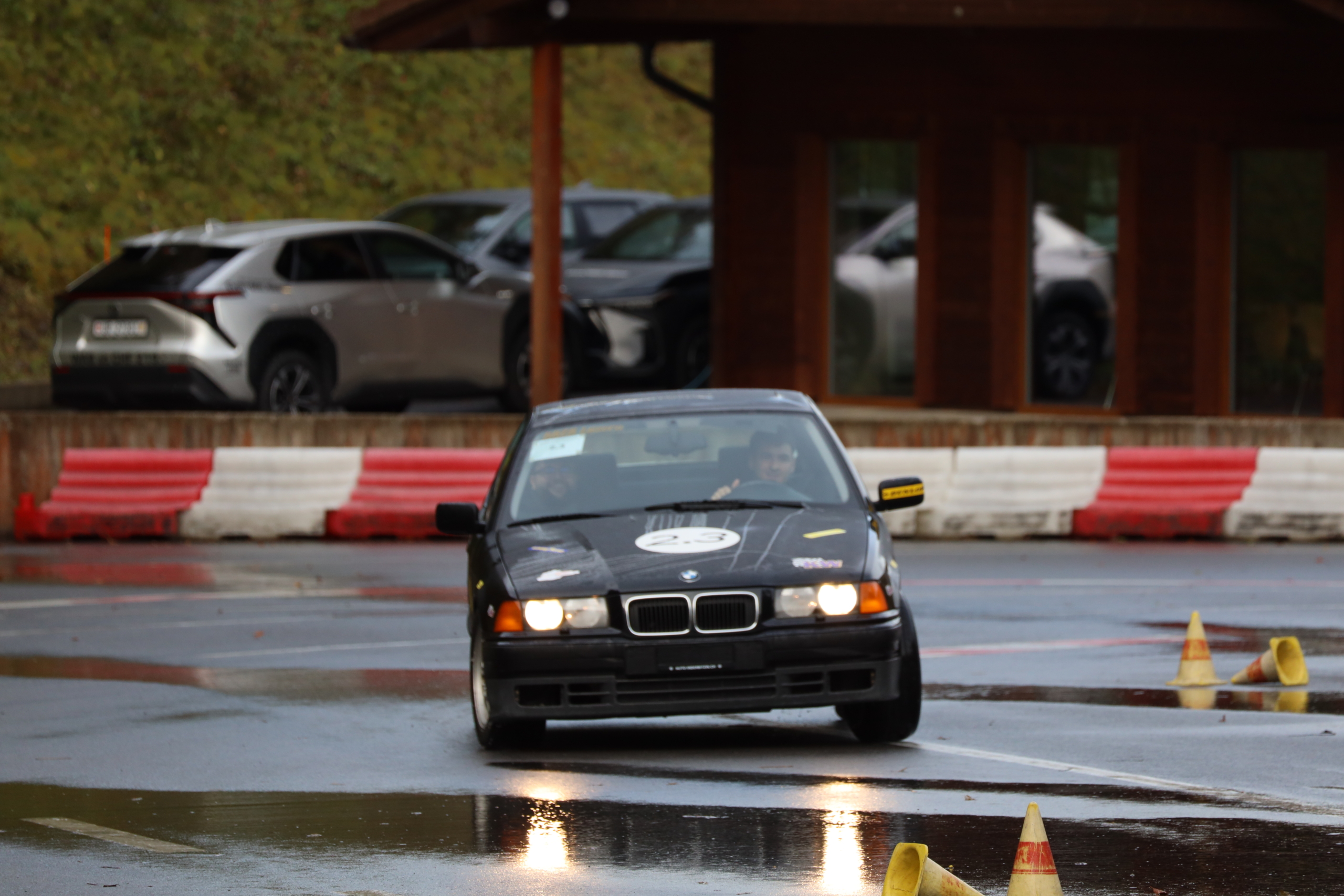 Die Arbeitsgruppe hat 4 Posten mit interessanten Themenbereichen ausgearbeitet, welche von den Lernenden in Zweierteams bearbeitet werden. Es werden Versuche mit Slalomfahrten und einer Bremspiste mit Gleitbelag gefahren. Mit der Driftbox, einem elektronischen Gerät, welches die Fahrstrecke und die Geschwindigkeit mittels Hochgeschwindigkeits-GPS ermittelt und durch drei Beschleunigungssensoren in den Raumachsen fahrdynamische Grössen ermittelt und Bremsverzögerungen bzw. -strecken sowie Slalomzeiten errechnet.
